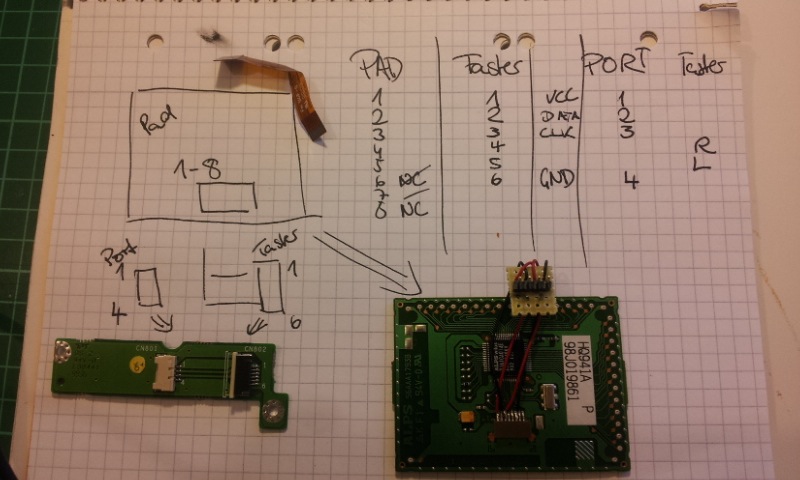 Während meiner Sortier und Aufräumaktionen, die meistens eher im Chaos oder der puren Verzweiflung enden, bin ich auf ein altes Touchpad aus meinem Notebook gestoßen. Ich muss wohl gedacht haben, wenn da nur vier Kontakte zum Notebook gehen, sollte man damit sicher noch mal was anfangen können.