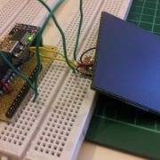 Anhand der unterschiedlichen ALPS Pads und dem Oscillator dessen Mittelbein gegen Masse geht und meinem Multimeter auf Widerstandsmessung eingestellt, konnte ich die Pinbelegung dann doch schnell bestimmen. Mein reaktiviertes Atmega8 Board, welches ich Arduino IDE fähig lötete sendet mir nun über die serielle Schnittstelle die X und Y Differenzen, die mein Fingerstreifen auslösen.
